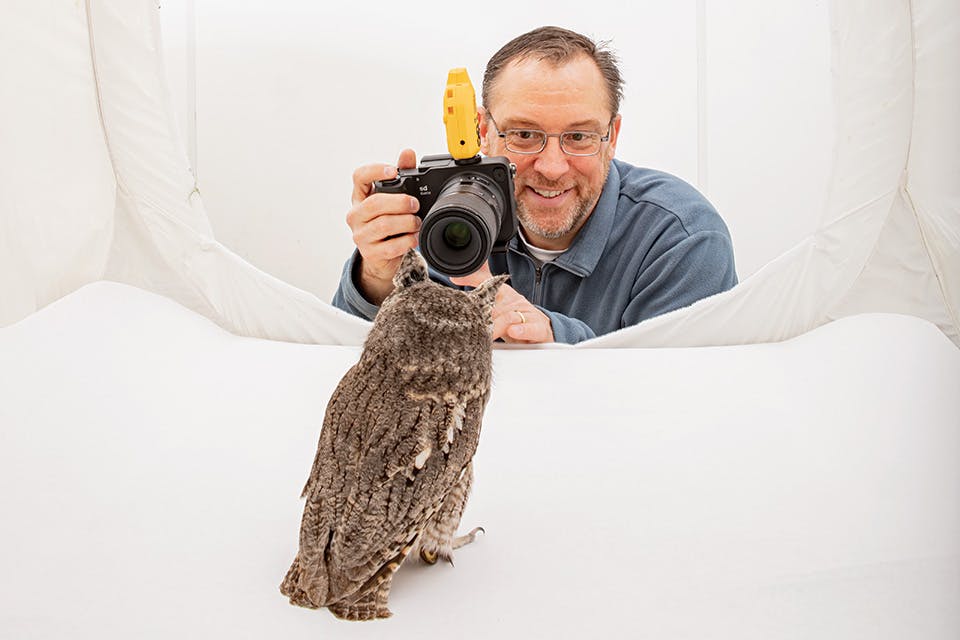 The image is one of two dozen large-scale photographs FitzSimmons brought to Telluride, Colorado, in 2010 for a gallery show of his work at the historic Sheridan Opera House. His series of wild animals on seamless, white backgrounds also included a jumping spider, an Eastern box turtle, a striped skunk and a blue jay. The photographer was curious how those in attendance would respond to his work.
